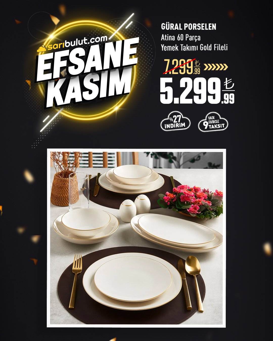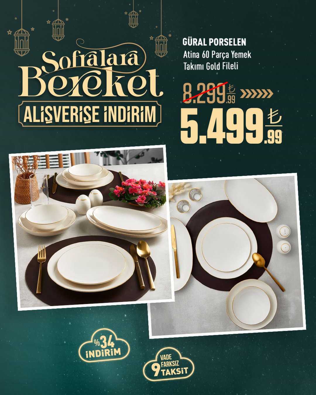 Porland Almina 18 Parça Yemek ve Sunum Takımı Altın Fileli
