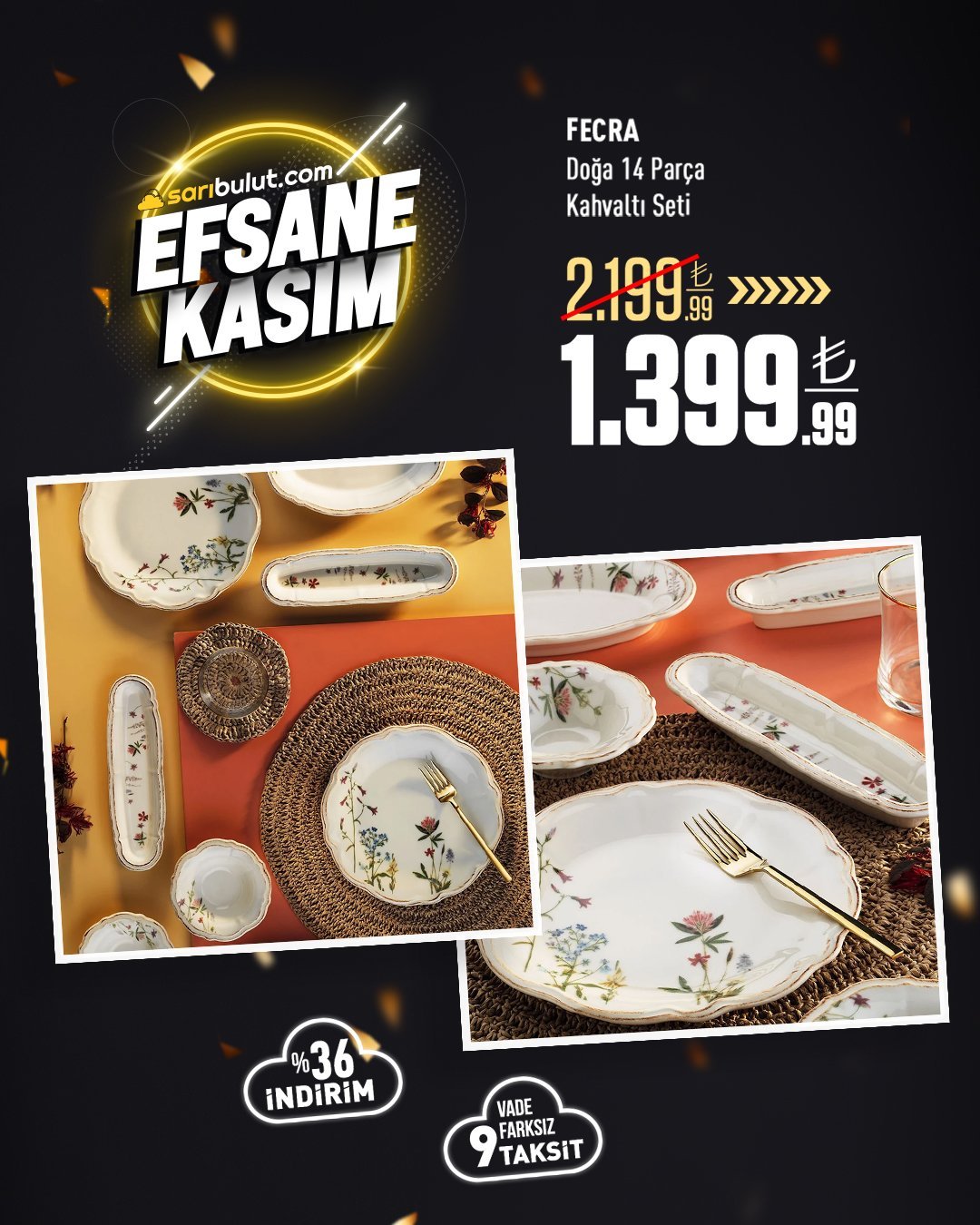 Fecra Floranda 35 Parça Gold Fileli Kahvaltı Seti