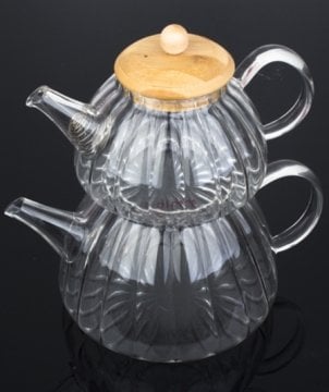 Acar Bambu Kapaklı Cam Çaydanlık Seti Desenli