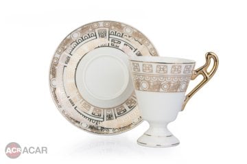 Acar Hiyeroglif Desen Kahve Takımı Beyaz