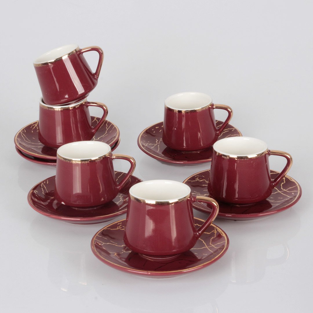 Acar Sesamos Mermer Desen 6 Kişilik Kahve Fincan Takımı - Bordo