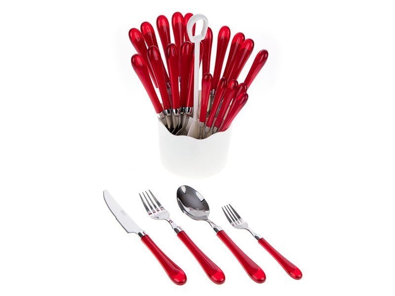 Biev SGR1401 Kırmızı 24 Parça Çatal Kaşık Bıcak Takımı