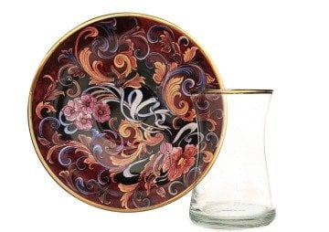 Burçlu Çay Seti Porselen Tabaklı 1