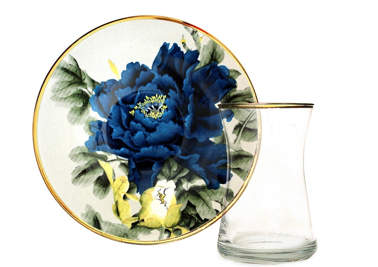 Gül Desenli Porselen Tabaklı Çay Seti 02