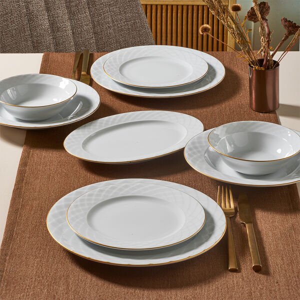 Güral Porselen Alfa 51 Parça Yemek Takımı Gold Fileli