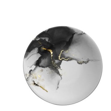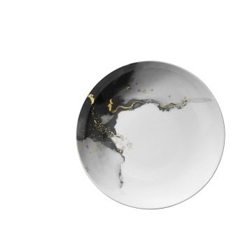 Altının Zarafet: Altın Varaklı Özel Seri Yemek Takımı, yuvarlak şekli, beyaz taban rengi ve özel altın dekal detayları ile her masa düzeninizi zenginleştirir. Altın varaklı zarafet, sofralarınıza şıklık ve lüksü bir araya getirir.
