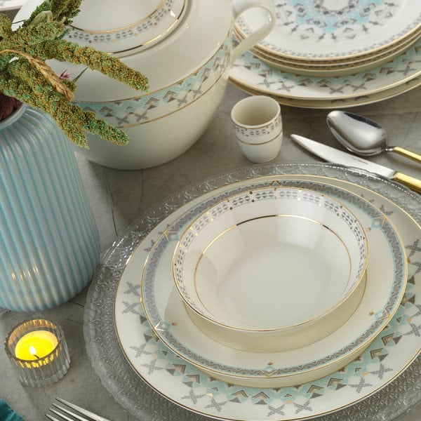 Kütahya Porselen Bone Kalipso 62 Parça 11403 Desen Altın Fileli Yemek Takımı