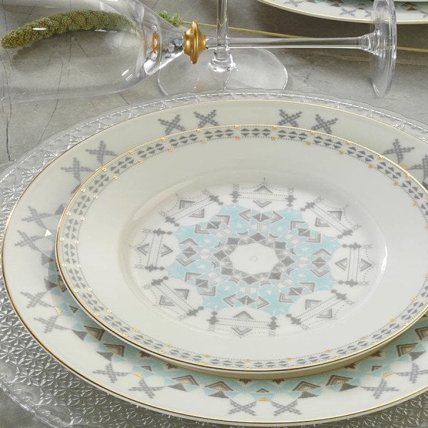 Kütahya Porselen Bone Kalipso 62 Parça 11403 Altın Fileli Yemek Takımı;