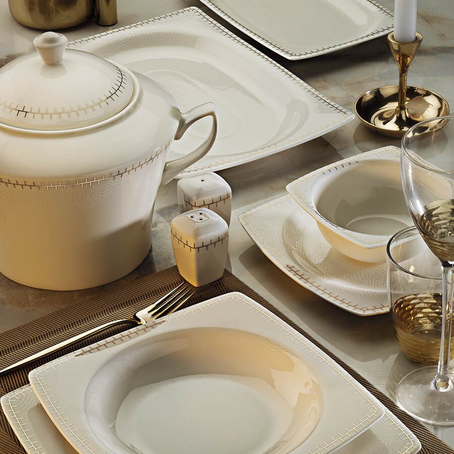 Kütahya Porselen Bone Mare 62 Parça Altın Fileli Yemek Takımı 12393