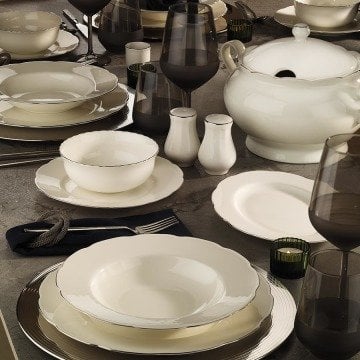 Kütahya Porselen Bone Olympos 83 Parça Yemek Takımı Platin File
