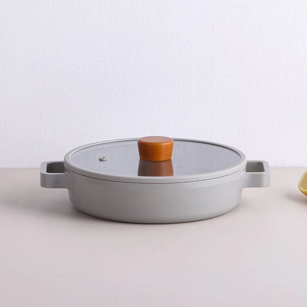 Neoflam Fika Cam Kapaklı Alüminyum Sığ Tencere 22 Cm Gri