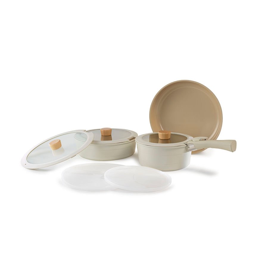 Neoflam Midas 9 Parça Ayrılabilen Saplı İç İçe Geçebilen Tencere Tava Seti Bej